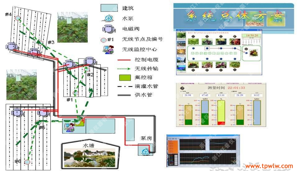 8、大棚可完成自動(dòng)灌溉、自動(dòng)噴藥、自動(dòng)施肥(液態(tài)肥)等功能,且不需人工干預(yù),只需在辦公室進(jìn)行鼠標(biāo)操作便可輕松完成上述復(fù)雜動(dòng)作,而且系統(tǒng)可設(shè)定自動(dòng)模式,例如:根據(jù)當(dāng)前自動(dòng)采集的水分來判定是否需要灌溉等動(dòng)作,實(shí)現(xiàn)系統(tǒng)的自動(dòng)化;