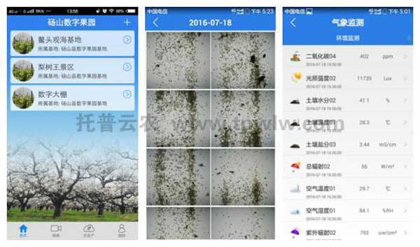 通過(guò)手機(jī)APP隨時(shí)隨地監(jiān)控果園監(jiān)管部門可實(shí)現(xiàn)遠(yuǎn)程數(shù)據(jù)監(jiān)管,專家預(yù)警和指導(dǎo),在農(nóng)產(chǎn)品品質(zhì)監(jiān)管工作中起到重要作用。