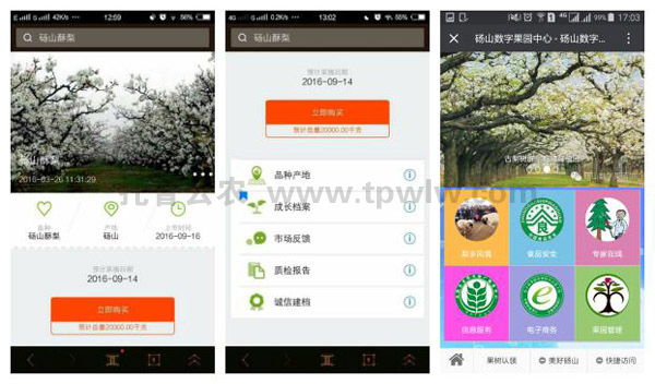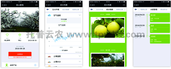 碭山“數(shù)字果園”的托普云農(nóng)綜合管理平臺(tái)還嵌入了農(nóng)產(chǎn)品質(zhì)量安全追溯系統(tǒng),實(shí)現(xiàn)“從農(nóng)田到餐桌”的全程可追溯化管理。該系統(tǒng)是區(qū)域農(nóng)產(chǎn)品質(zhì)量安全信息統(tǒng)一發(fā)布和查詢平臺(tái),根據(jù)農(nóng)產(chǎn)品“一物一碼”標(biāo)準(zhǔn),消費(fèi)者可以掃描農(nóng)產(chǎn)品上附帶的而為買,準(zhǔn)確了解農(nóng)產(chǎn)品從生產(chǎn)、加工、物流、倉(cāng)儲(chǔ)、銷售等全過(guò)程信息。