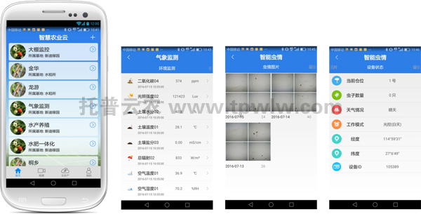 據(jù)湖南攸縣植保站的工作人員介紹,該套系統(tǒng)由蟲情信息自動采集分析系統(tǒng)、遠程小氣候信息采集系統(tǒng)、視頻監(jiān)控設備組成,可實時自動完成蟲情信息、苗情信息、田間氣候信息的數(shù)據(jù)采集,并自動上傳至托普智慧農(nóng)業(yè)云平臺。托普遠程可拍照式蟲情測報燈可實現(xiàn)在無人監(jiān)管的情況下,自動完成誘蟲、殺蟲、蟲體分散、拍照、運輸、收集、排水等系統(tǒng)作業(yè),并實時將蟲害情況上傳到托普智慧農(nóng)業(yè)云平臺,在網(wǎng)頁端顯示識別的蟲子,根據(jù)識別的結(jié)果,對蟲害的發(fā)生與發(fā)展進行分析和預測。