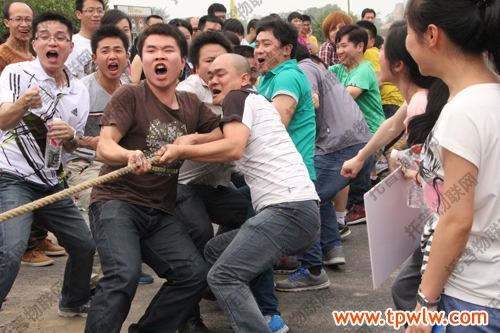 首先進(jìn)行的是拔河比賽。各隊(duì)都挑選出最強(qiáng)壯的選手,行兵布陣,站好隊(duì)形,拉好繩子。一聲令下,比賽開始。一時(shí)間,觀戰(zhàn)人員的加油聲和比賽人員的號(hào)子聲響成一片,現(xiàn)場的氣氛瞬間沸騰了起來!最終“好漢隊(duì)”以絕對的優(yōu)勢獲得了拔河比賽的第一名。