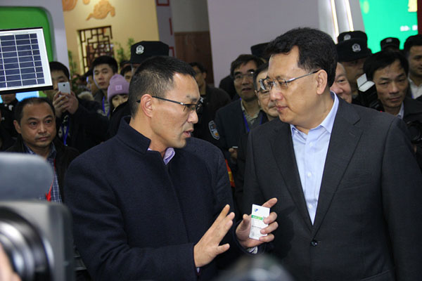 本屆展會(huì)“互聯(lián)網(wǎng)+”成托普云農(nóng)展區(qū)亮點(diǎn),吸引了省領(lǐng)導(dǎo)的目光及浙江衛(wèi)視的關(guān)注。省委副書記袁家軍、省人大常委會(huì)副主任程渭山、副省長(zhǎng)孫景淼等領(lǐng)導(dǎo)在工作人員的陪同下參觀了托普云農(nóng)展區(qū)。托普云農(nóng)董事長(zhǎng)陳渝陽向袁家軍副書記一行介紹了公司在物聯(lián)網(wǎng)方面取得的階段性進(jìn)展和研發(fā)成果,結(jié)合現(xiàn)場(chǎng)展示的植保信息化系統(tǒng),向袁家軍副書記一行演示了智能農(nóng)業(yè)儀器是如何“+”互聯(lián)網(wǎng)技術(shù)在全天候無人值守的情況下實(shí)現(xiàn)“四情”監(jiān)測(cè)的。直接展現(xiàn)了互聯(lián)網(wǎng)產(chǎn)業(yè)與農(nóng)業(yè)產(chǎn)業(yè)融合發(fā)展促進(jìn)傳統(tǒng)農(nóng)業(yè)轉(zhuǎn)型升級(jí)的發(fā)展現(xiàn)狀。