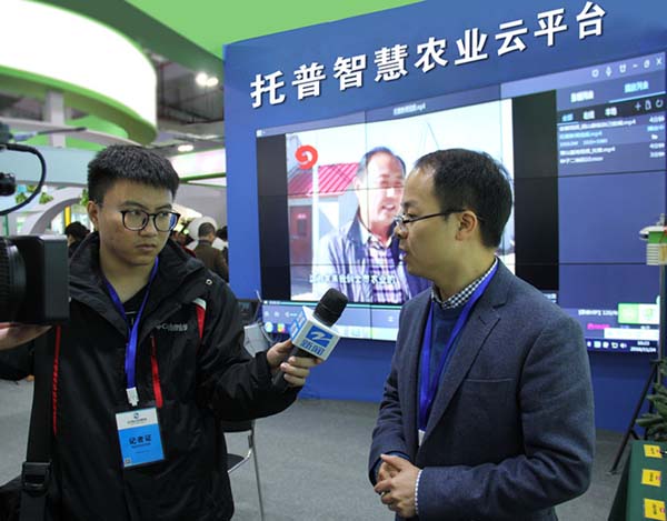 這一番“互聯(lián)網(wǎng)+農(nóng)業(yè)”的介紹也獲得了浙江衛(wèi)視的關(guān)注。記者來到托普云農(nóng)展位,公司副總朱旭華向記者介紹了公司獲得的科研成就及展出的智能化軟硬件系統(tǒng)。主要有:托普云農(nóng)農(nóng)業(yè)“四情”監(jiān)控系統(tǒng)、設(shè)施農(nóng)業(yè)監(jiān)控系統(tǒng)、水肥一體化監(jiān)控系統(tǒng)、智慧農(nóng)業(yè)云平臺(tái)等農(nóng)業(yè)物聯(lián)網(wǎng)系統(tǒng)、平臺(tái)及土壤墑情監(jiān)控系統(tǒng)硬件、農(nóng)藥殘留速測(cè)儀、相關(guān)智能硬件設(shè)備(如遠(yuǎn)程傳輸智能蟲情測(cè)報(bào)燈、溫室通、大田六合一無線傳感器、植物本體傳感器)。