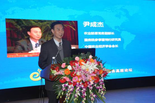 農(nóng)業(yè)部原常務(wù)副部長、國務(wù)院參事室特約研究員、中國農(nóng)業(yè)經(jīng)濟(jì)學(xué)會會長尹成杰作大會主旨報告