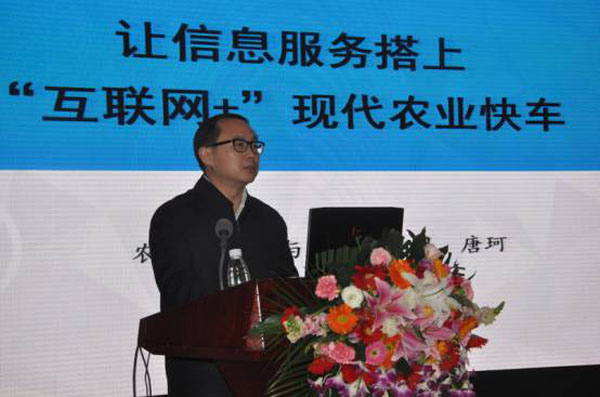 農(nóng)業(yè)部市場信息司唐珂司長以“讓信息服務(wù)搭上‘互聯(lián)網(wǎng)+’現(xiàn)代農(nóng)業(yè)快車”為主題,從“互聯(lián)網(wǎng)+”現(xiàn)代農(nóng)業(yè)相關(guān)政策解讀、農(nóng)業(yè)部“互聯(lián)網(wǎng)+”現(xiàn)代農(nóng)業(yè)行動成效、信息進(jìn)村入戶工程三個方面作了報告,受到與會代表的熱烈歡迎。