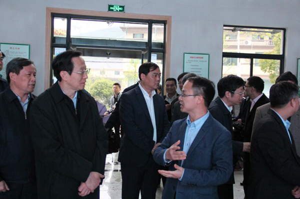 農(nóng)業(yè)部部長(zhǎng)韓長(zhǎng)賦(中)、浙江省副省長(zhǎng)孫景淼(左三)、浙江省農(nóng)業(yè)廳廳長(zhǎng)林健東(左一)、托普云農(nóng)副總朱旭華(左五)
