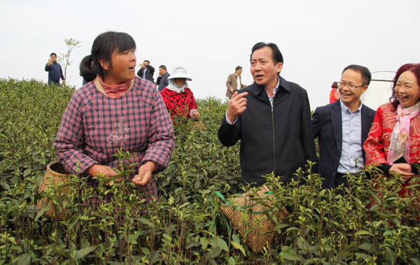 農(nóng)業(yè)部副部長(zhǎng)陳曉華一行領(lǐng)導(dǎo)在溪龍鄉(xiāng)生態(tài)茶園考察