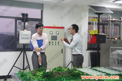 圖為:托普儀器技術(shù)員講解農(nóng)業(yè)物聯(lián)網(wǎng)應用
