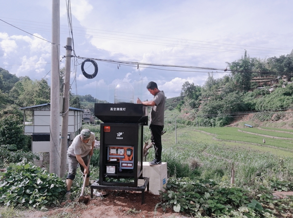 總而言之,目前我國糧食生產(chǎn)形勢依舊嚴峻,重大病蟲害的防控不容懈怠。 6月30日,托普云農(nóng)售后服務部的工作人員在云南省江城縣完成了最后一臺高空測報燈的安裝,代表著托普云農(nóng)順利完成了本次農(nóng)業(yè)農(nóng)村部下達的“三區(qū)三帶”布防任務。 高空測報燈是一款利用燈誘吸引遷飛性蟲害的測報燈,針對草地貪夜蛾的生物習性做了技術匹配與功能優(yōu)化,可在防控工作當中輔助植保人員完成草貪測報工作,為全國布防一盤棋做好基層數(shù)據(jù)采集工作。