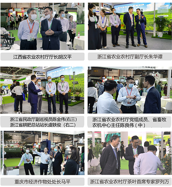 浙江省省委常委、省軍區(qū)司令員馮文平(左二);浙江省農(nóng)業(yè)農(nóng)村廳副廳長唐冬壽(左一);浙江省農(nóng)業(yè)農(nóng)村廳鄉(xiāng)村產(chǎn)業(yè)與市場信息處副處長程兵(右二)參觀托普云農(nóng)展位