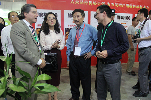 農(nóng)業(yè)部種子局局長張延秋、副局長馬淑萍一行還帶領(lǐng)前來參加中國-阿根廷種業(yè)交流峰會(huì)的阿根廷代表團(tuán)參觀了托普云農(nóng)展區(qū)。阿根廷國家種子研究所董事會(huì)主席拉威諾勒 萊英姆多農(nóng)業(yè)工程師仔細(xì)觀摩了公司所展出的種子檢驗(yàn)儀器和系統(tǒng),并與陳渝陽總經(jīng)理進(jìn)行交流。