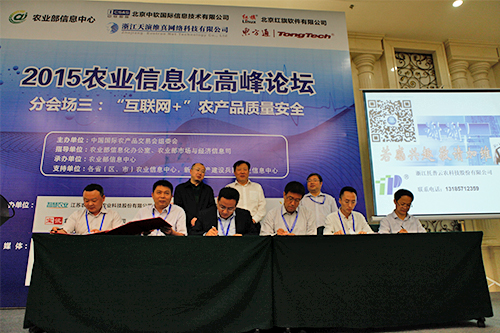 托普云農作為平臺成員之一在論壇現(xiàn)場還進行了隆重的農產品質量安全物聯(lián)網創(chuàng)新與應用推進協(xié)作平臺成立簽約儀式。農業(yè)部農產品質量安全監(jiān)管局廣德福巡視員、農業(yè)部信息中心張興旺主任出席并見證。