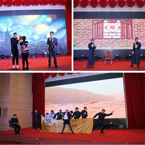 精彩紛呈的“新故事,新起點(diǎn)”2016新春年度盛典在四位支持人的深情開場中拉開序幕。熱情歡樂《金獅送?!奉I(lǐng)先開演,為大家送來了新年的祝福;勁舞《說愛就愛》,激情火爆,樂觀向上的精神風(fēng)貌展現(xiàn)得淋漓盡致;研發(fā)團(tuán)隊(duì)的舞臺劇《電影院那些事》演繹了公司研發(fā)人員豐富飽滿的內(nèi)心世界。一首《飄雪》,瞬間將我們就帶入了純情浪漫模式。古箏演奏,優(yōu)雅悠揚(yáng);激情昂揚(yáng)的《保衛(wèi)黃河》將整個(gè)晚宴推向高潮;銷售部老男人們的《群魔亂舞》讓大家更是樂的開懷暢飲!期間的互動環(huán)節(jié)及歡樂大抽獎(jiǎng)讓全場氛圍熱烈而又充滿期待,高潮迭起!