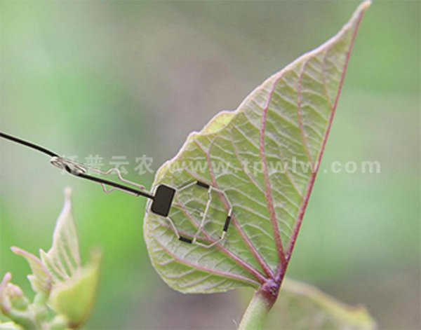 2.打開上、下夾使傳感器與葉子固定,且需要將傳感器探頭(電熱調(diào)節(jié)器)置于葉子背陽面且充分接觸,安裝時應避免經(jīng)常按、壓探頭,如野蠻操作可能導致?lián)p壞。