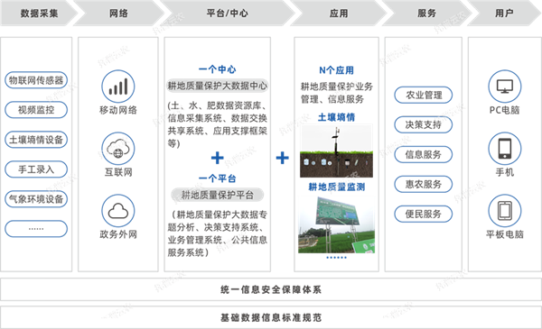 利用“1+1+N”模式,通過信息技術(shù),構(gòu)建標(biāo)準(zhǔn)化、規(guī)范化的耕地質(zhì)量管理信息系統(tǒng),構(gòu)建一個耕地質(zhì)量保護(hù)大數(shù)據(jù)中心,一個耕地質(zhì)量保護(hù)大數(shù)據(jù)平臺和N個業(yè)務(wù)子系統(tǒng)。
